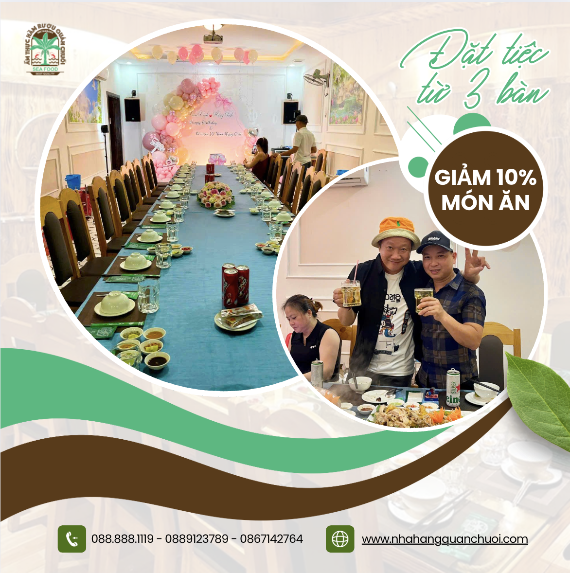 👉 Chỉ cần đặt tiệc từ 3 bàn trở lên, Quán Chuối tặng bạn 10% trên tổng món ăn!
